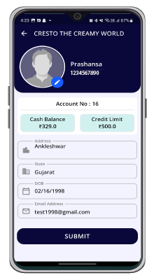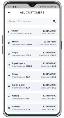 This is our Customers screen where you can find all the customers registered in your shop. You can also find customer’s name, account no, mobile number and their cash balance and credit limit.