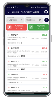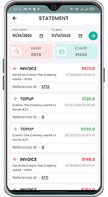 By tapping on specific shop you can view all the statement of that shop like topup, invoice, transaction date and time. Also you can view statement by filtering of desired date.