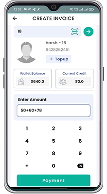 This is how you can create invoice for your Customer. You will need to specify their account number/mobile number or card number and also by scanning Qr code option to view their detail like cash balance and credit limit as well as their personal detail. From here also you can Add topup.
